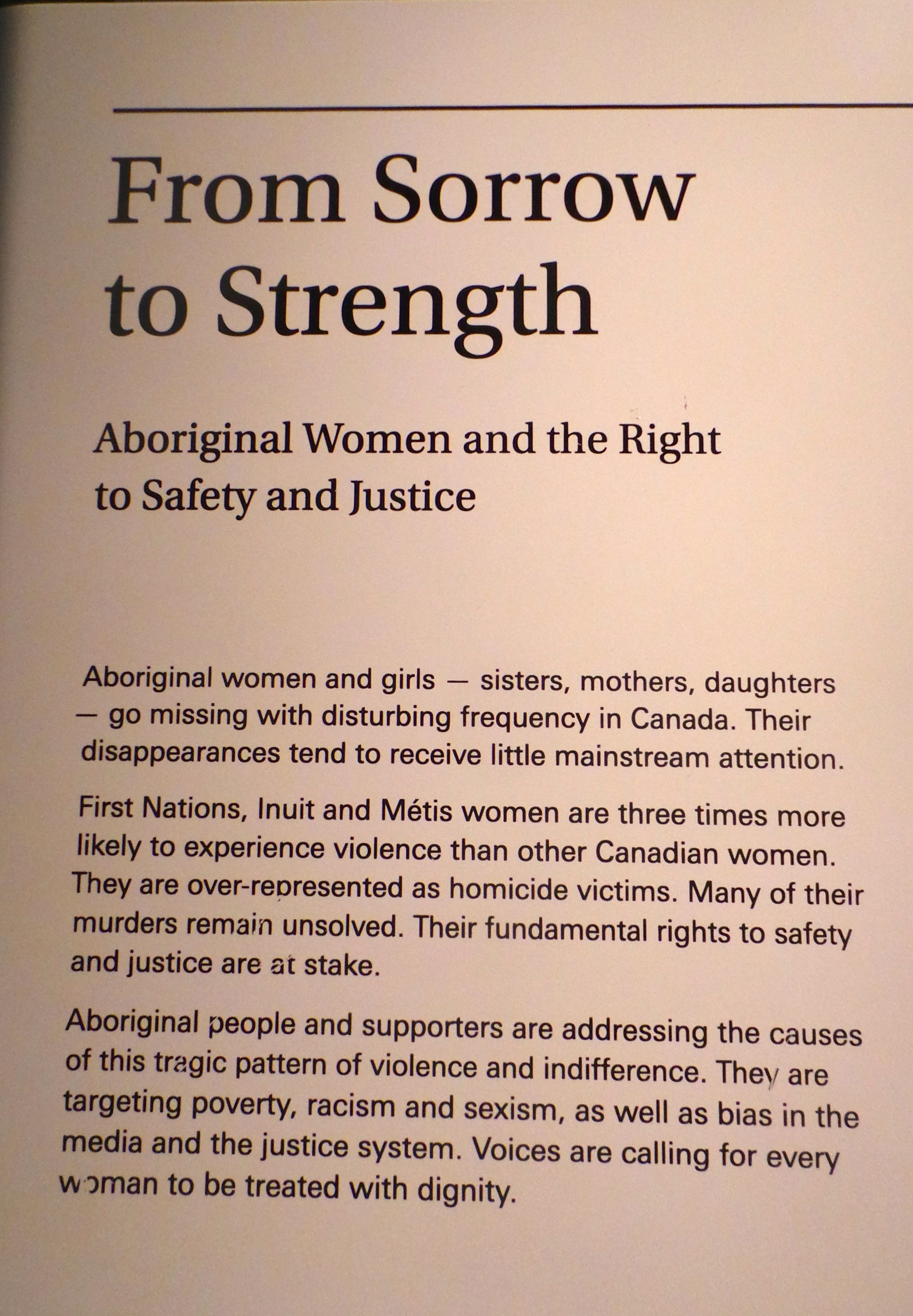 - Figure 3. A close up of the exhibit Aboriginal Women and the Right to Safety and Justice (author photograph).