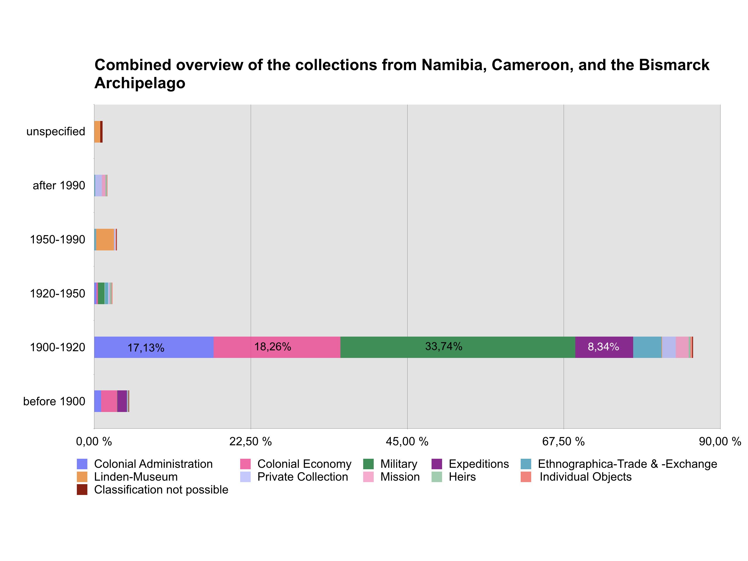 - Combined Overview of the collections from Namibia, Cameroon, and the Bismarck Archipelago in the Linden Museum Stuttgart, as of 30 March 2018 (Chart: Gesa Grimme)