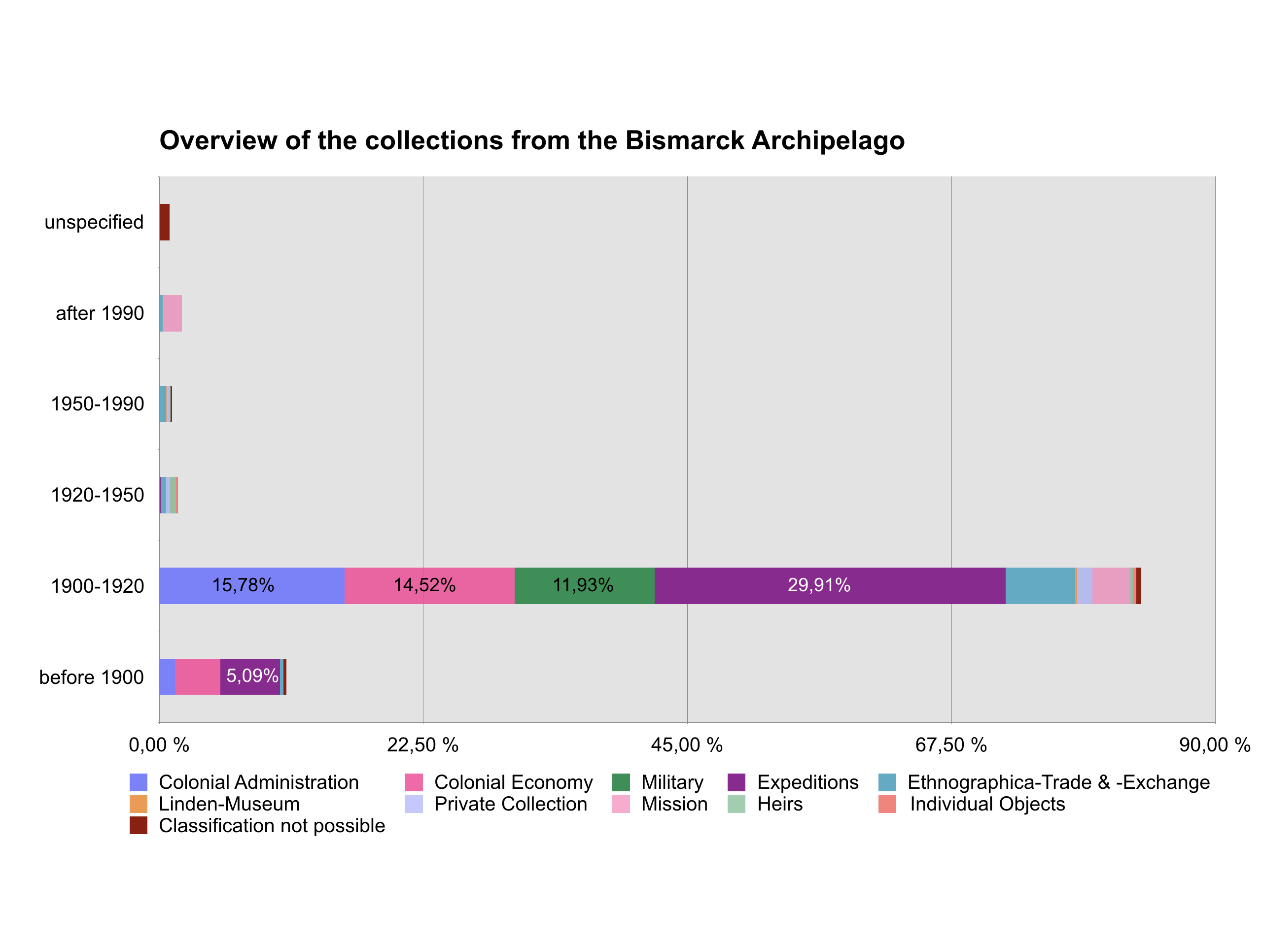 - Profile of the Bismarck Archipelago collection in the Linden Museum Stuttgart, as of 30 March 2018 (Chart: Gesa Grimme)