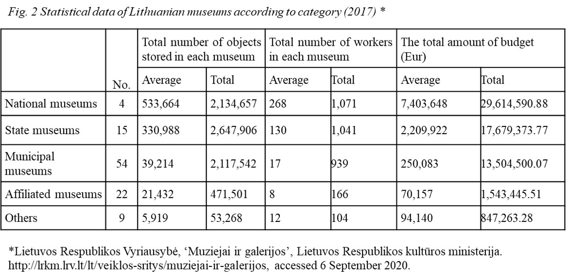 - Fig. 2 Statistical data of Lithuanian museums according to category (2017)