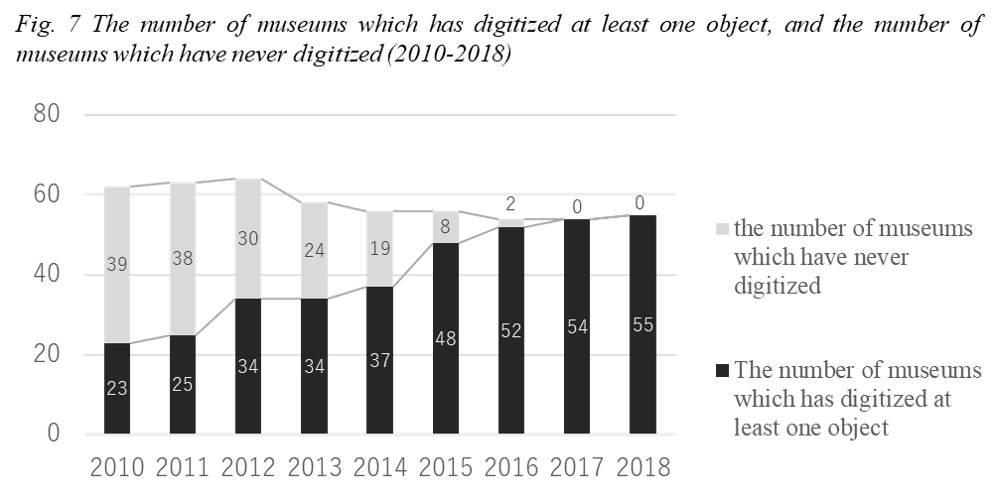 - Fig. 7 The number of museums which has digitized at least one object, and the number of museums which have never digitized (2010-2018)