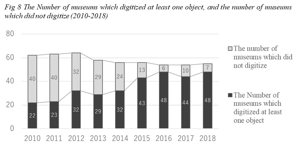 - Fig 8 The Number of museums which digitized at least one object, and the number of museums which did not digitize (2010-2018)