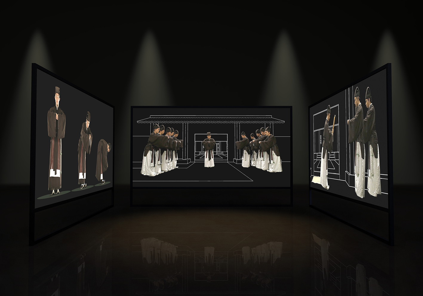- Figure 5: Remaking Confucian Rights, ‘Three-screen installation of the capping ceremony’, 8th Triennial of Contemporary Art, Ljubljana, Slovenia, 2016.